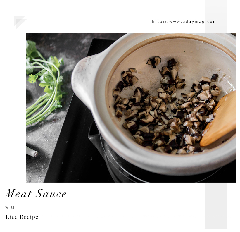 1.热锅倒入些许油, 炒香蒜末和香菇丁