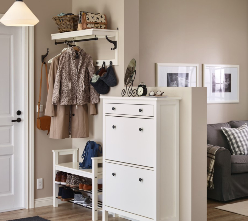 小户型面积有限,要充分利用竖直墙面空间,挂钩适用于衣服杂物等各种物件,实用指数非常高。一款独立的落地式衣架,占地面积不大,但也非常实用,回到家脱下的外套,摘下的围巾、包包,随手就可以挂上,轻松搞定进门后第一步。