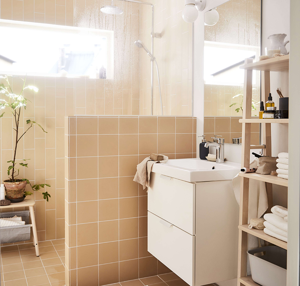如果浴室柜面积有限,可以准备一个收纳箱,存放盥洗品、清洁品和生理用品。有独立包装的厕纸,从外包装取出来存放,能缩小占用空间。包装花哨的清洁品,也可以将外包装撕掉存放,而使用频次低,需要确认使用方法的空调清洗剂、管道疏通剂等建议不要把标签撕掉。