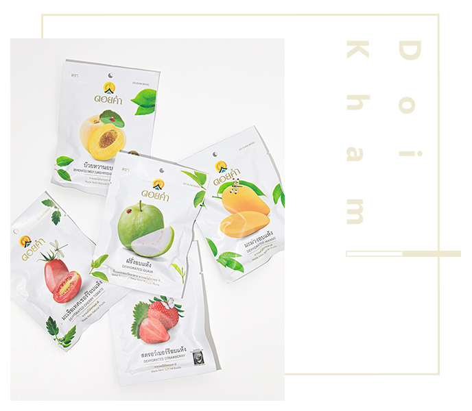 由泰国皇家农场推出的品牌Doi Kham,水果干都是从泰国北部采摘后两小时内直接原颗去风干处理,再分成独立包装推出市面贩售,产品主打没有农药,非常适合买回国作伴手礼送人,其中又以草莓干、芒果干和芭乐三款水果最受欢迎。